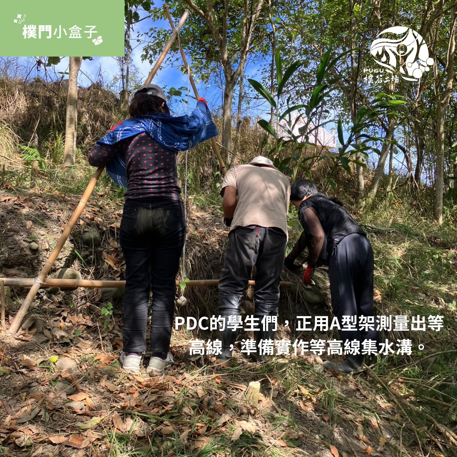 在我們的課程中,也會讓同學們實際操作測量等高線的方法,以及實際就地取材,用各種不同的方式做出等高線集水溝,並種上地複植物與果樹。在今年2月的課程結束之後,有同學回家馬上就在自己的土地上做出 #等高線集水溝,現在已經開始收成自己的蔬菜囉!